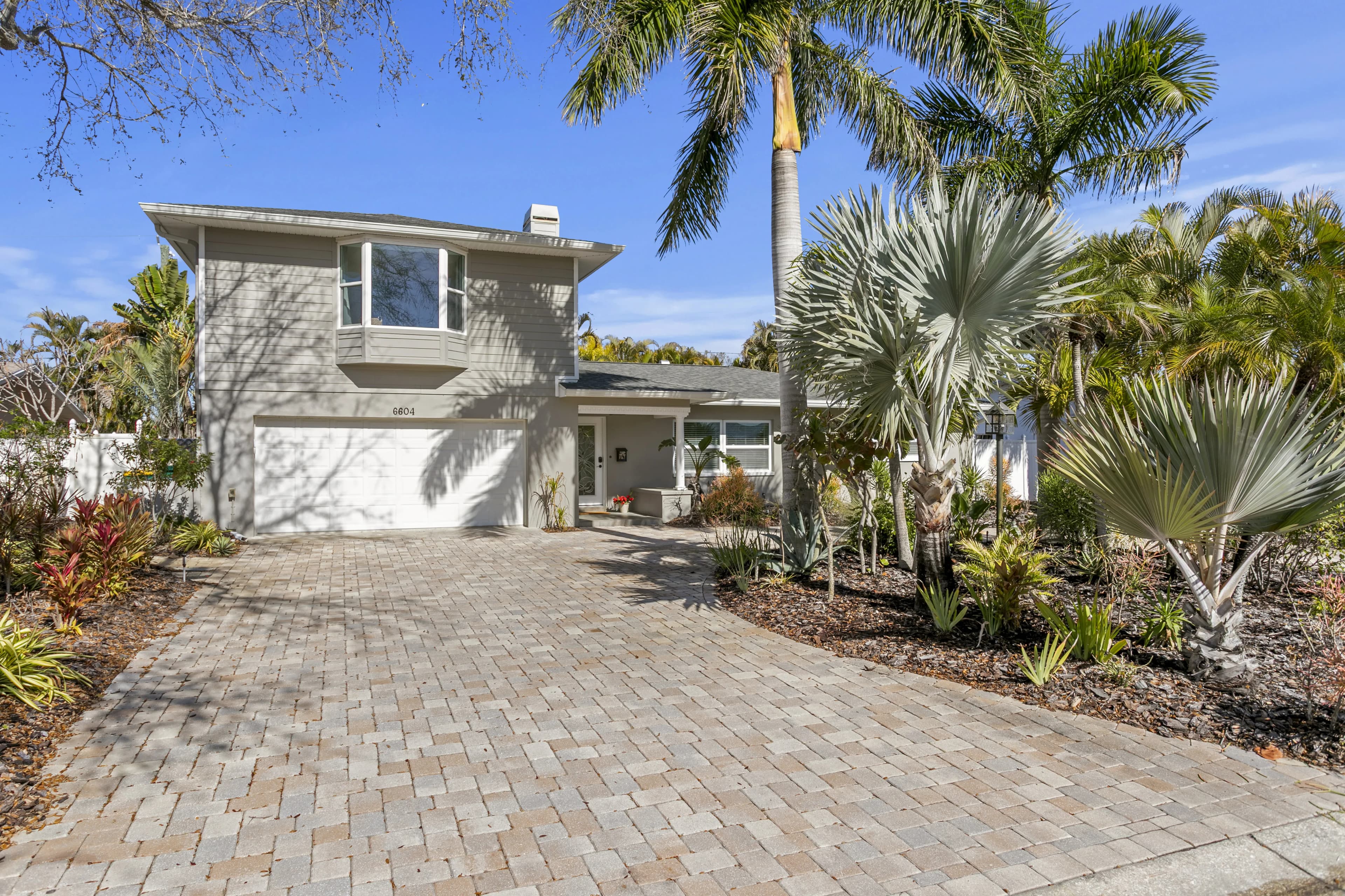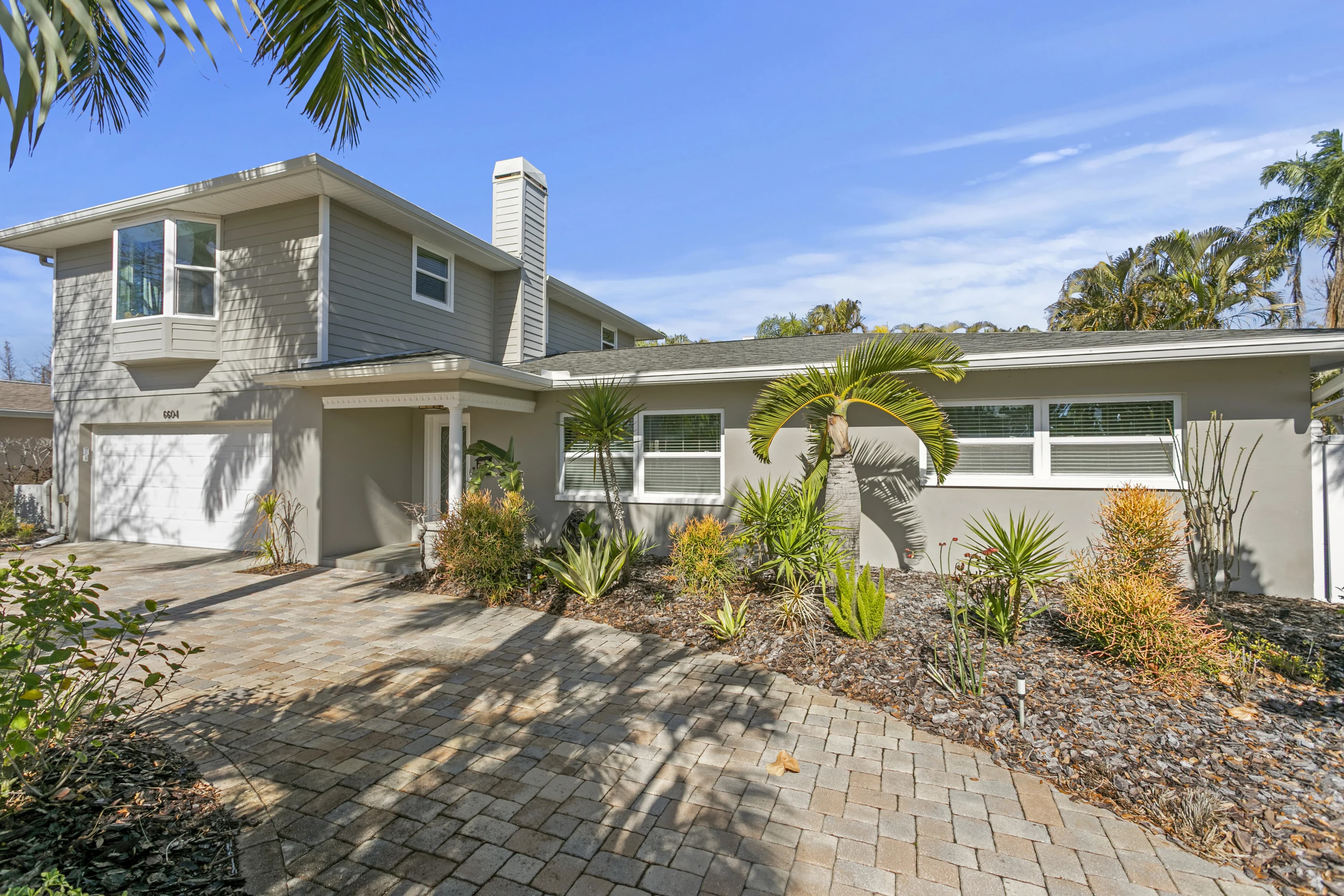 6604 Blue Heron Dr S blends a flexible two-story floor plan with bright updated interiors, a chef's kitchen, and a private backyard pool framed by mature tropical landscaping and broad paver hardscaping.