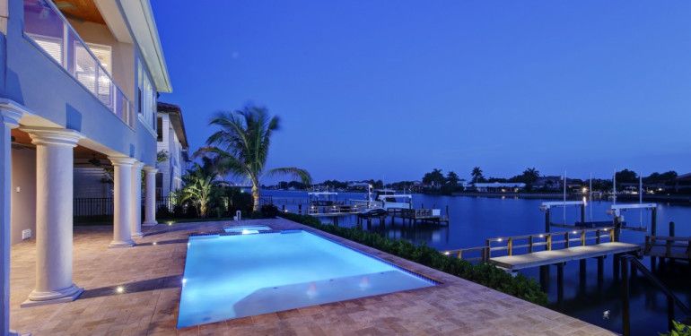 Other amenities include two community pools and spas, several lakes and ponds, a spectacular clubhouse, fitness center with professional equipment, villas with private elevators, deep water floating concrete marina with 30’ and 50’ slips and on site fishing pier.